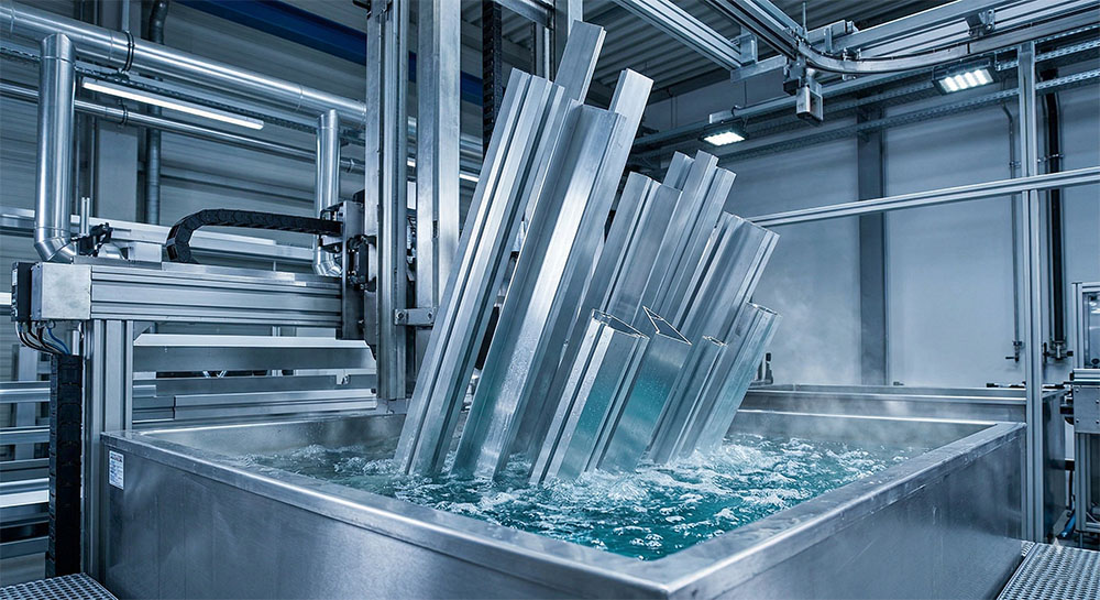 Acid etching is essential for removing natural oxides and achieving a uniform, smooth, and matte finish on aluminium surfaces. Our high-efficiency acidic solutions precisely modify the metal’s topography, effectively masking minor extrusion lines, die marks, and surface imperfections. This controlled etching process not only enhances the visual appearance of the metal but also creates the ideal micro-roughness required for maximum mechanical interlocking and superior paint adhesion.