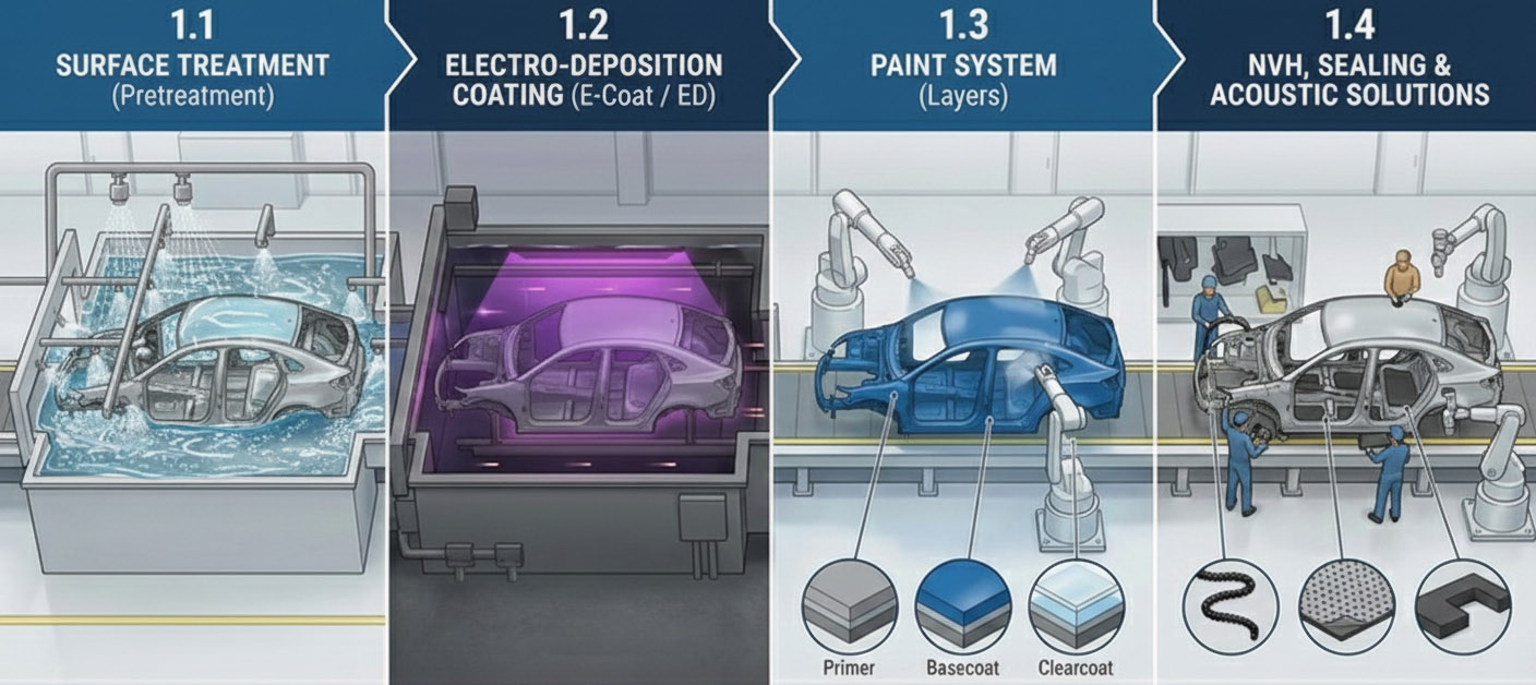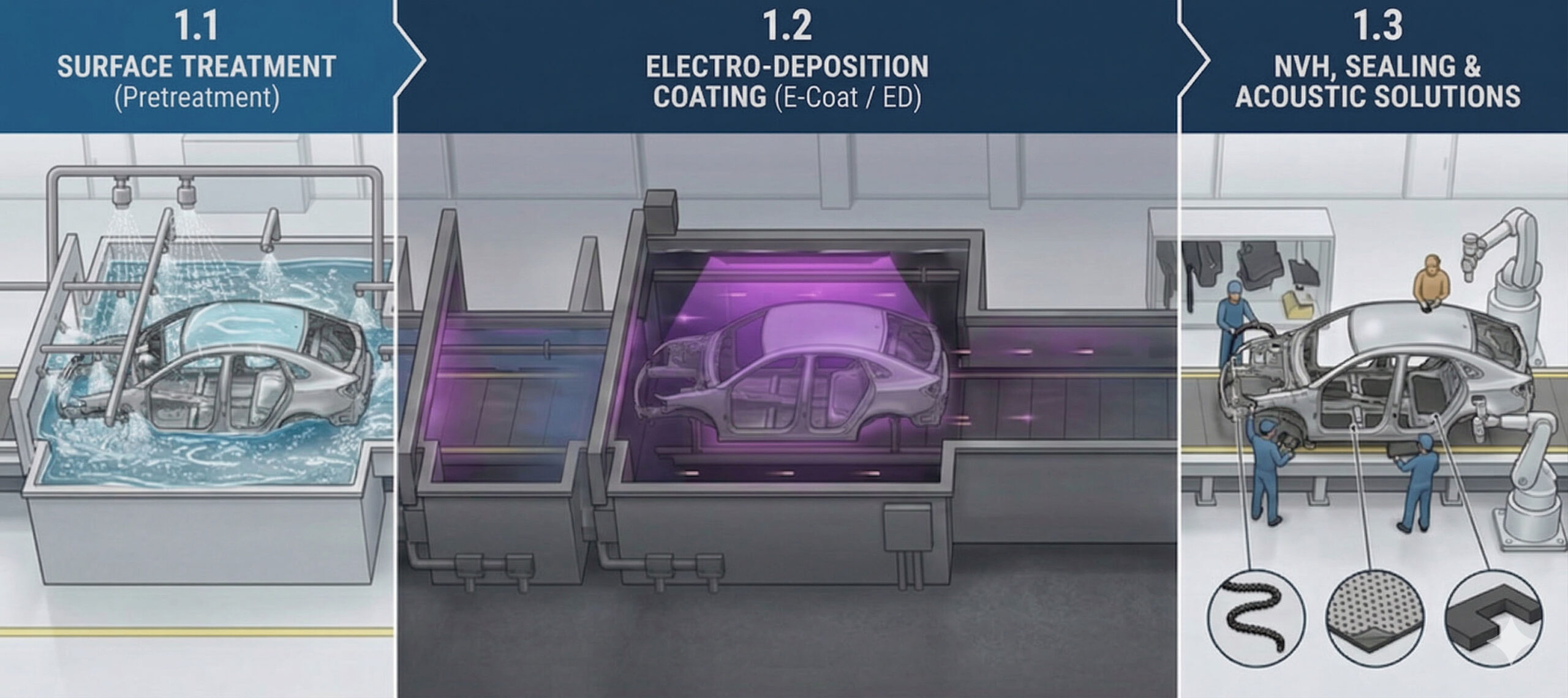 2. Electro-Deposition (E-Coat) Advanced immersion technology providing uniform coverage and superior corrosion protection for internal cavities.